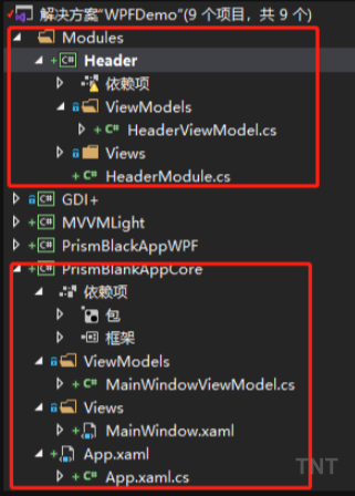 该项目包含了一个启动页,并且在启动页当中,我们划分好了对应的区域。这个时候,我们便可以灵活的配置我们的应用程序功能。使用Prism提供的强大功能,我们可以动态的加载应用程序模块,为指定的Region动态分配内容。